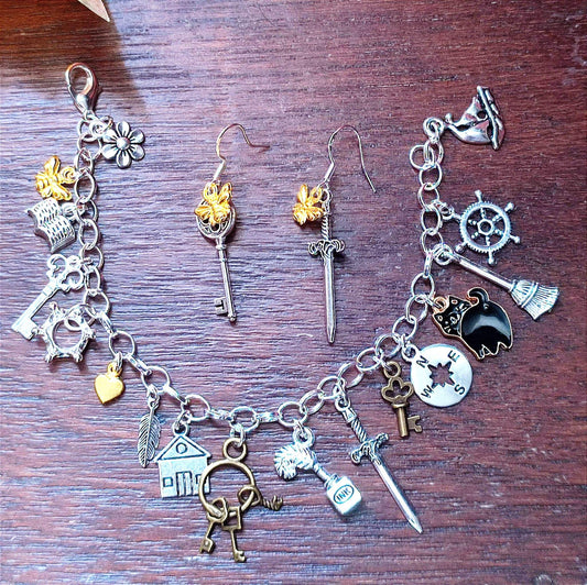 The Starless Sea inspired charm bracelet and earrings, Bookish gift